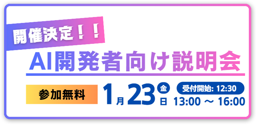 本事業では、AI開発者にとっては、これまで参入が難しかった市場への進出のきっかけとなるほか、開発・実証を行うためのデータ提供や実証の場を設けられる等のメリットがあります。また、支援期間終了後には、本事業において開発・実証したソリューションを次のビジネス展開に生かすなど、更なる展開を進めていただきたいと考えています。